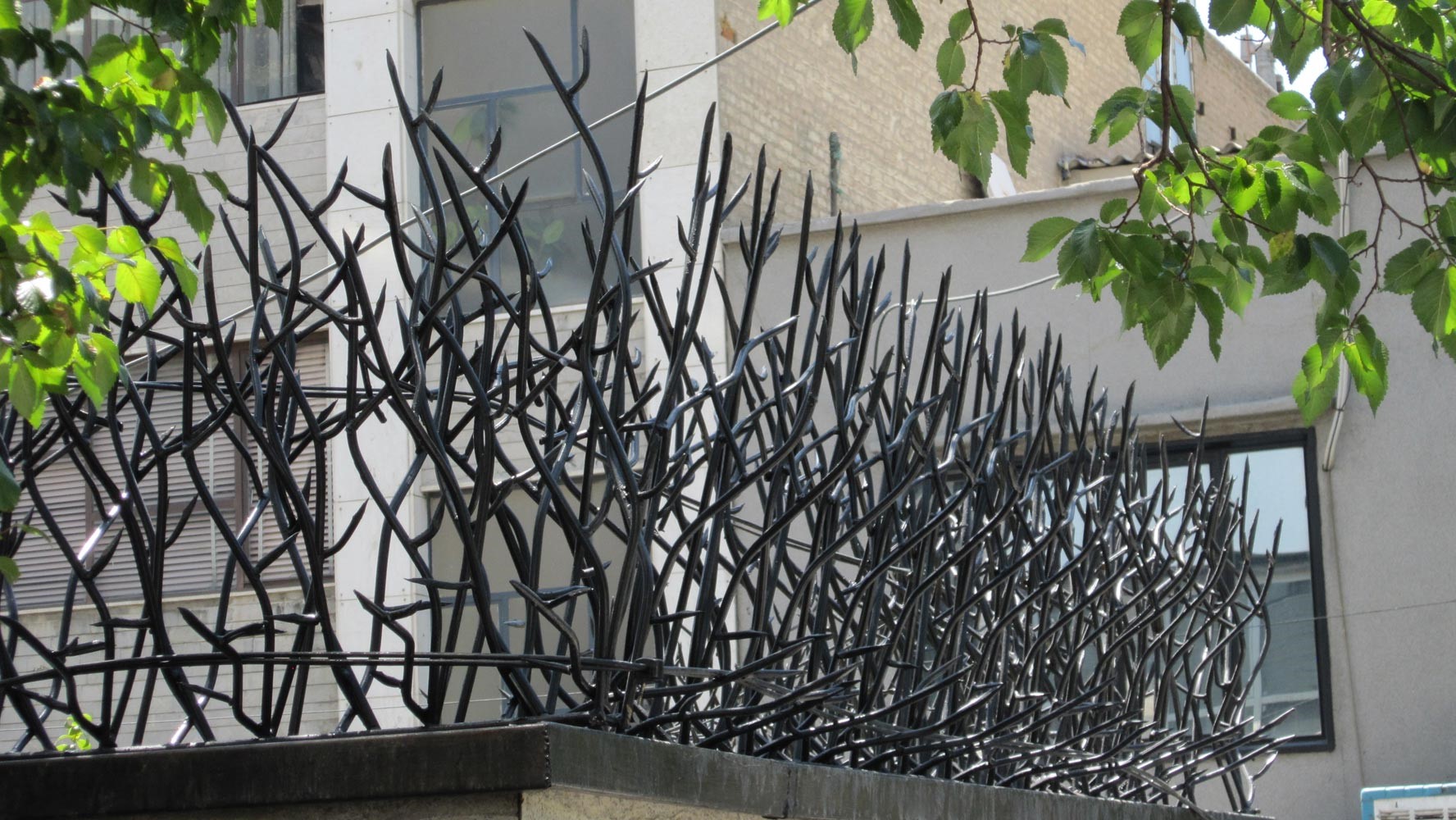 تجربه نشان داده است اگر بر روی دیوار ساختمان نرده شاخ گوزنی با تراکم , عرض و ارتفاع مناسب نصب شود .